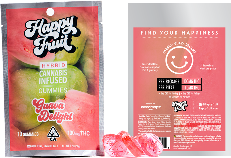 These delicious gummies have a fruity and sweet guava flavor. Each tin has 100mg of THC from premium cannabis distillate oil. All Guava Delight gummies are infused with hybrid dominant cannabis terpenes.